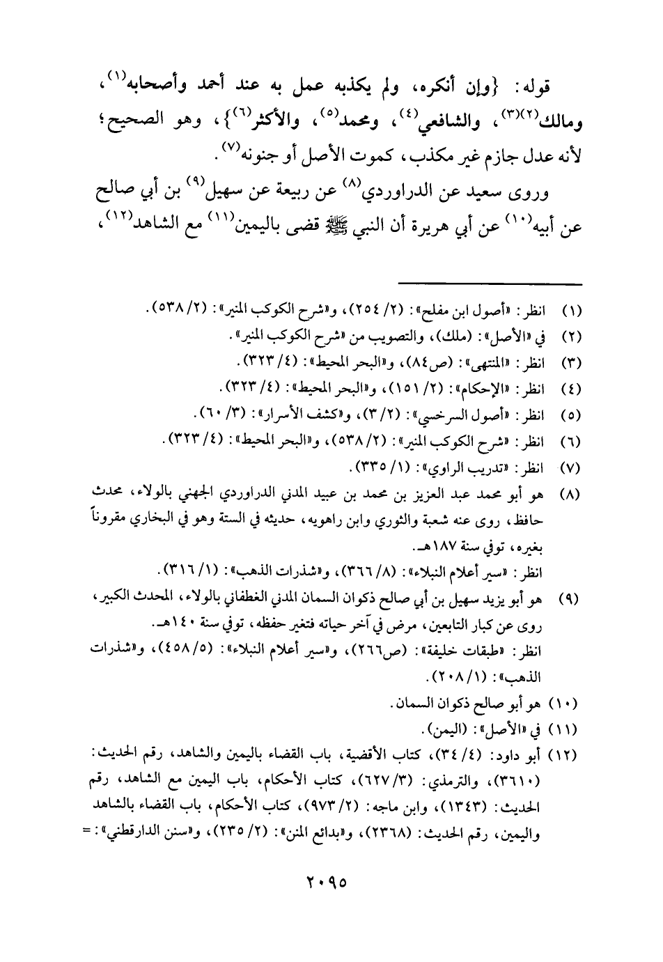 وروى سعيد عَن الدَّرَاورْدِي عَن ربيعَة عَن سُهَيْل بن أبي صَالح عَن أَبِيه عَن أبي هُرَيْرَة أَن النَّبِي - صَلَّى اللَّهُ عَلَيْهِ وَسَلَّم َ - قضى بِالْيَمِينِ مَعَ الشَّاهِد،
