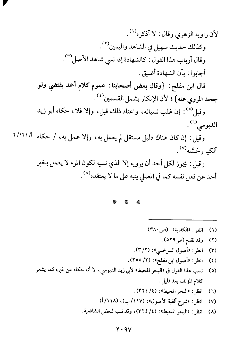 قَالَ ابْن مُفْلِح: {وَقَالَ بعض أَصْحَابنَا: عُمُوم كَلَام أَحْمد يَقْتَضِي وَلَو جحد الْمَرْوِيّ عَنهُ} ؛ لِأَن الْإِنْكَار يَشْمَل الْقسمَيْنِ.