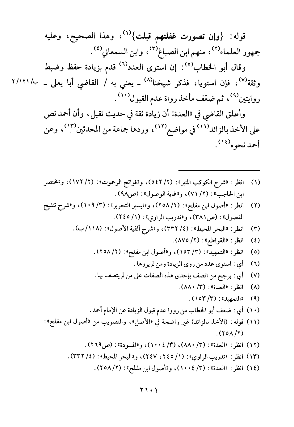 قَوْله: {وَإِن تصورت غفلتهم قبلت} ، وَهَذَا الصَّحِيح، وَعَلِيهِ جُمْهُور الْعلمَاء، مِنْهُم ابْن الصّباغ، وَابْن السَّمْعَانِيّ.