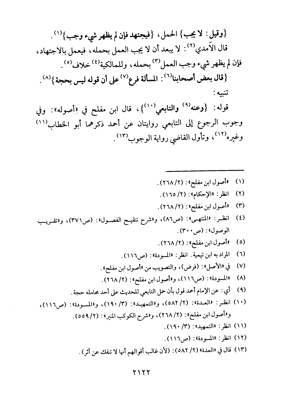 قَوْله: {وَعنهُ والتابعي} ، قَالَ ابْن مُفْلِح فِي " أُصُوله ": وَفِي وجوب الرُّجُوع إِلَى التَّابِعِيّ رِوَايَتَانِ عَن أَحْمد ذكرهمَا أَبُو الْخطاب وَغَيره، وَتَأَول القَاضِي رِوَايَة الْوُجُوب.