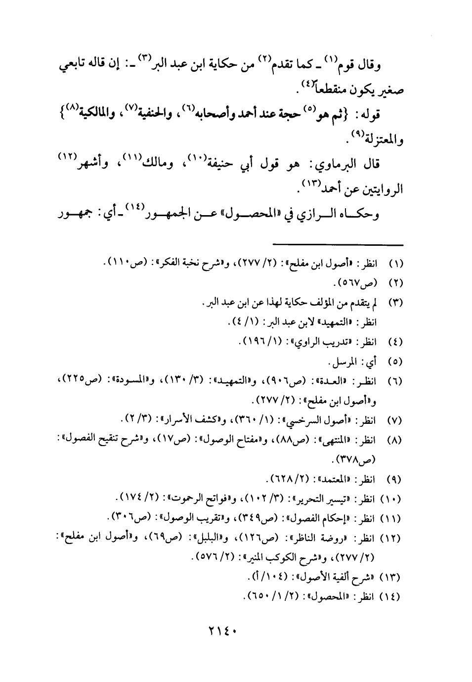 وَحَكَاهُ الرَّازِيّ فِي " الْمَحْصُول " عَن الْجُمْهُور - أَي: جُمْهُور