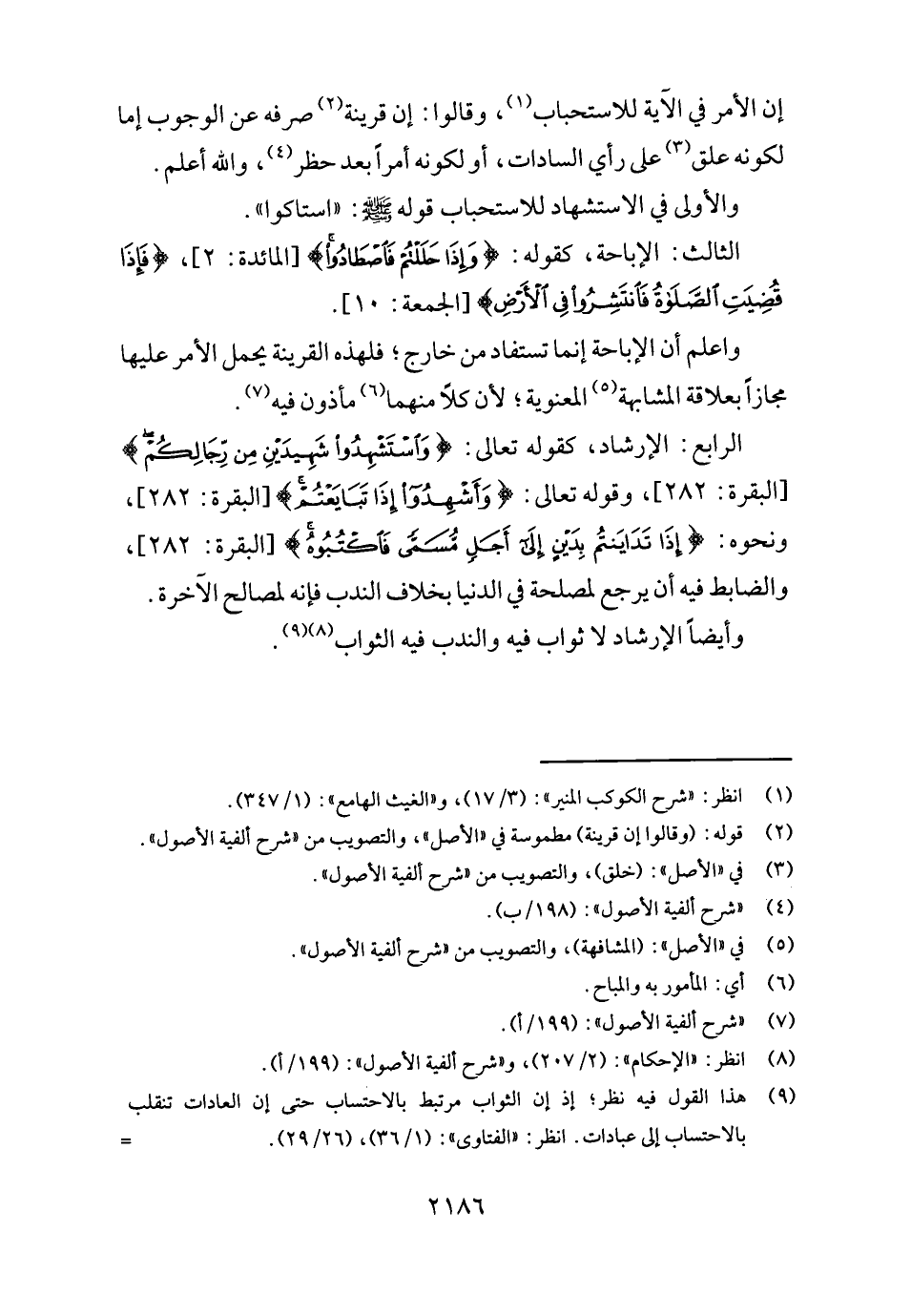 إِن الْأَمر فِي الْآيَة للاستحباب، وَقَالُوا: إِن قرينَة صرفه عَن الْوُجُوب إِمَّا لكَونه علق على رَأْي السادات، أَو لكَونه أمرا بعد حظر، وَالله أعلم.