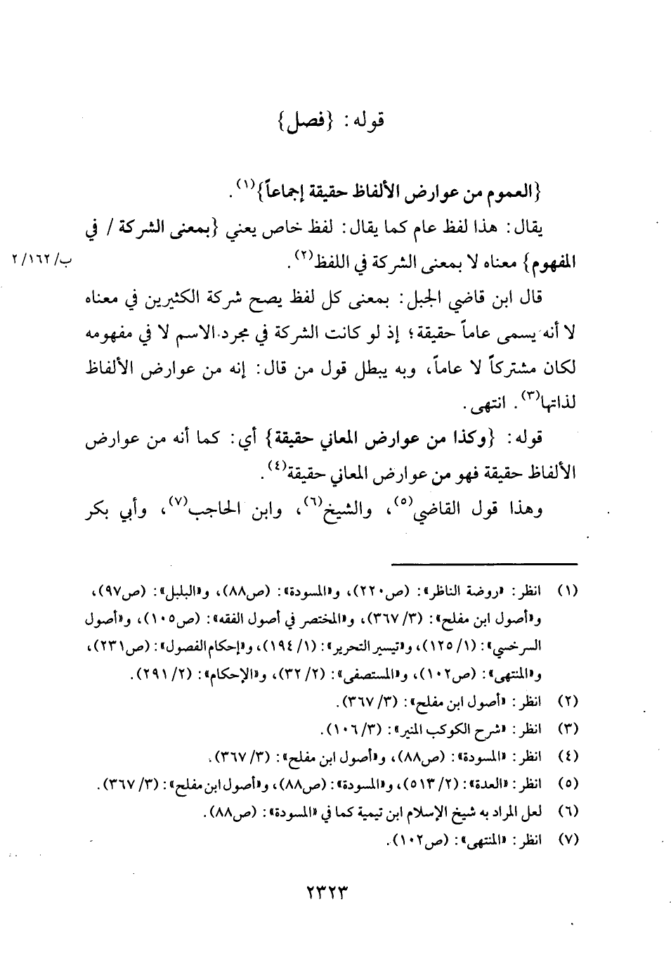 يُقَال: هَذَا لفظ عَام كَمَا يُقَال: لفظ خَاص يَعْنِي {بِمَعْنى الشّركَة فِي الْمَفْهُوم} مَعْنَاهُ لَا بِمَعْنى الشّركَة فِي اللَّفْظ.