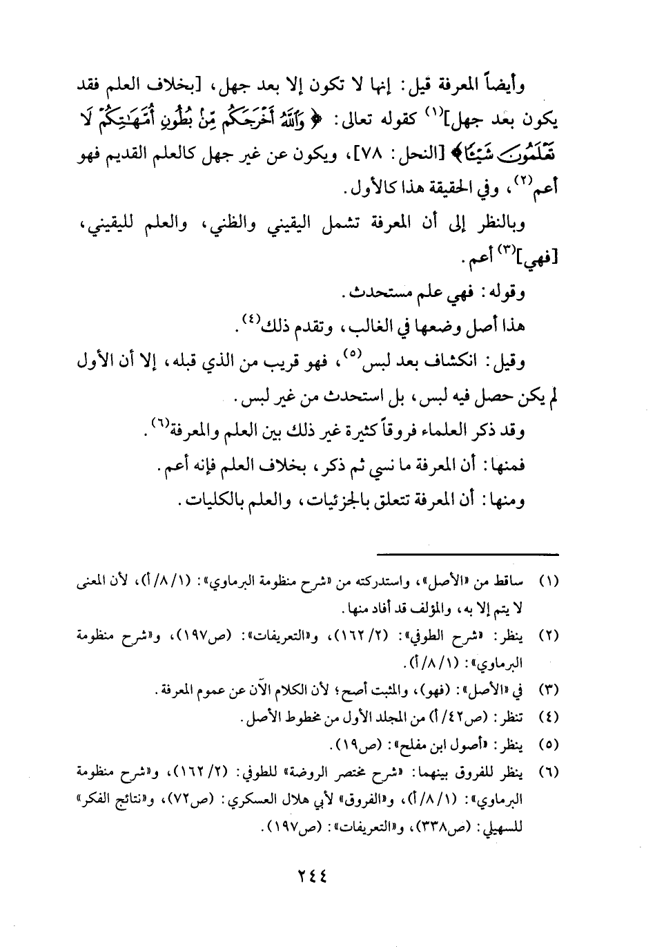 وَقد ذكر الْعلمَاء فروقاً كَثِيرَة غير ذَلِك بَين الْعلم والمعرفة.