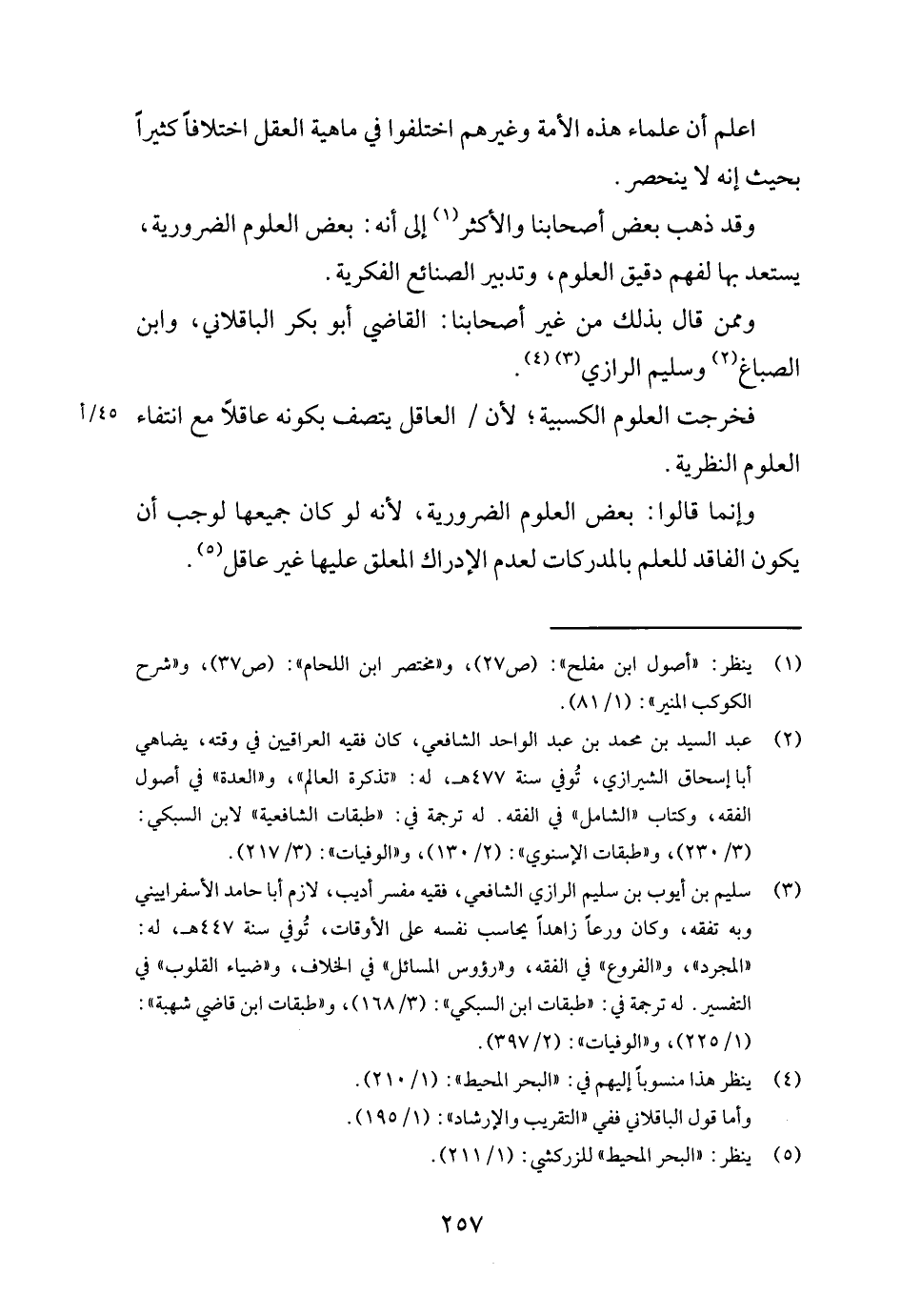 اعْلَم أَن عُلَمَاء هَذِه الْأمة وَغَيرهم اخْتلفُوا فِي مَاهِيَّة الْعقل اخْتِلَافا كثيرا بِحَيْثُ إِنَّه لَا ينْحَصر.