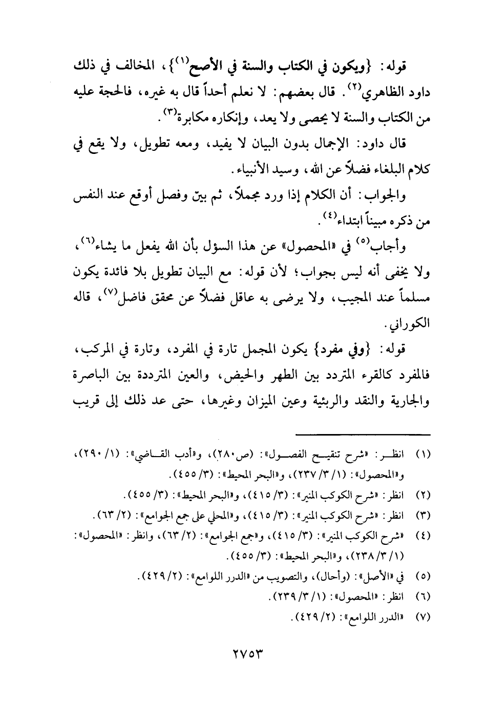 قَالَ دَاوُد: الْإِجْمَال بِدُونِ الْبَيَان لَا يُفِيد، وَمَعَهُ تَطْوِيل، وَلَا يَقع فِي كَلَام البلغاء فضلا عَن الله، وَسيد الْأَنْبِيَاء.