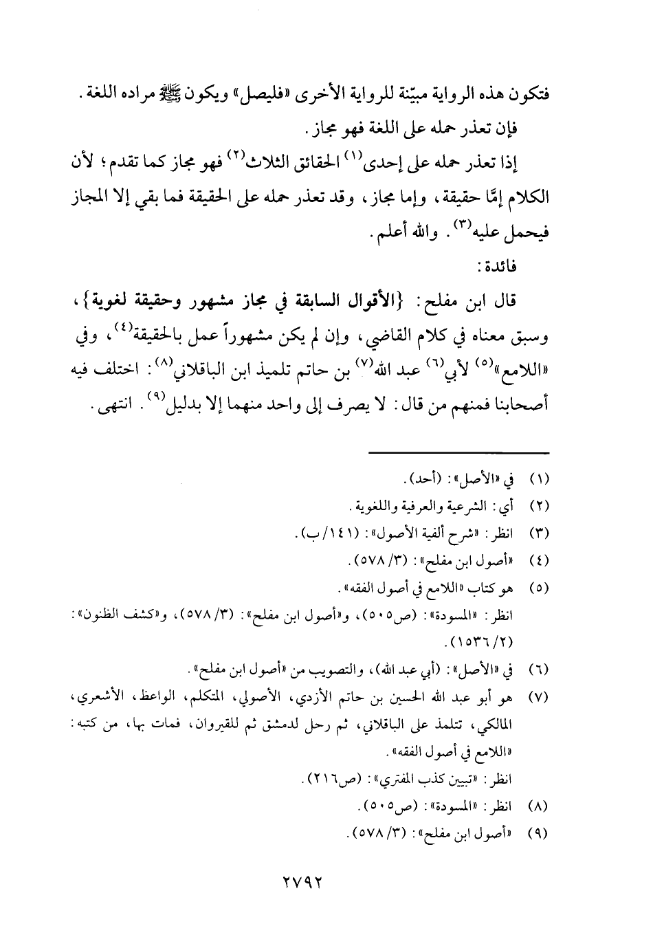 قَالَ ابْن مُفْلِح: {الْأَقْوَال السَّابِقَة فِي مجَاز مَشْهُور وَحَقِيقَة لغوية} ، وَسبق مَعْنَاهُ فِي كَلَام القَاضِي، وَإِن لم يكن مَشْهُورا عمل بِالْحَقِيقَةِ، وَفِي " اللامع " لأبي عبد الله بن حَاتِم تلميذ ابْن الباقلاني: اخْتلف فِيهِ أَصْحَابنَا فَمنهمْ من قَالَ: لَا يصرف إِلَى وَاحِد مِنْهُمَا إِلَّا بِدَلِيل. انْتهى.
