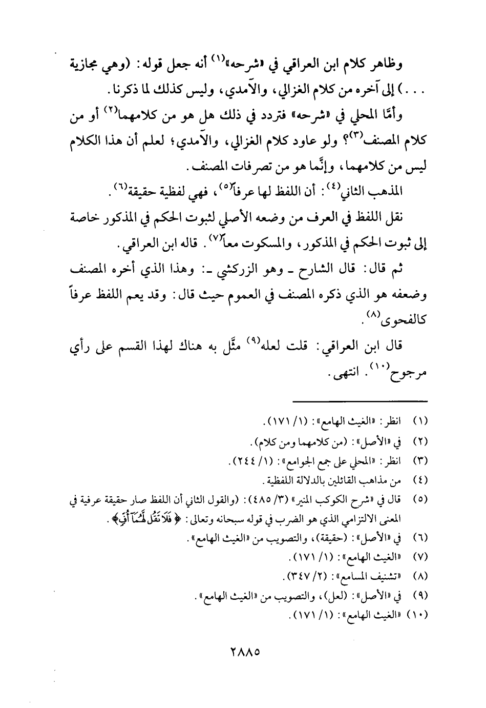 وَظَاهر كَلَام ابْن الْعِرَاقِيّ فِي " شَرحه " أَنه جعل قَوْله: (وَهِي مجازية) إِلَى آخِره من كَلَام الْغَزالِيّ، والآمدي، وَلَيْسَ كَذَلِك لما ذكرنَا.