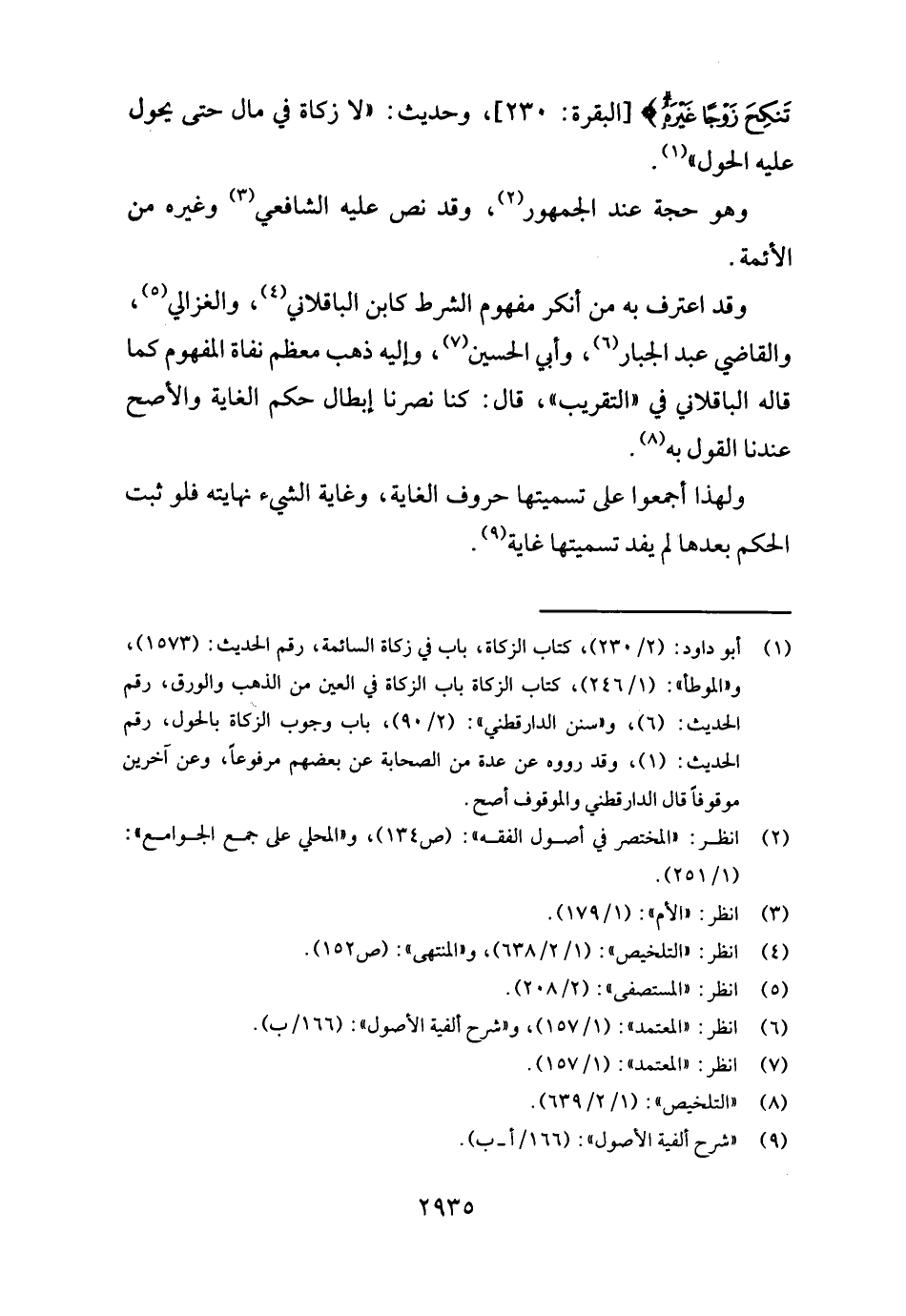 تنْكح زوجا غَيره} [الْبَقَرَة: ٢٣٠] ، وَحَدِيث: " لَا زَكَاة فِي مَال حَتَّى يحول عَلَيْهِ الْحول ".