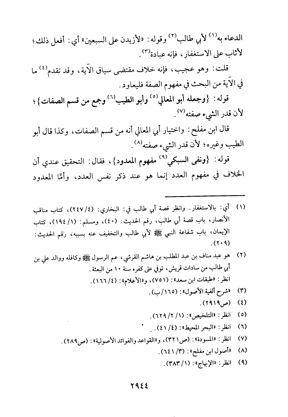الدُّعَاء بِهِ لأبي طَالب وَقَوله: " لأزيدن على السّبْعين " أَي: أفعل ذَلِك؛ لأثاب على الاسْتِغْفَار، فَإِنَّهُ عبَادَة. قلت: وَهُوَ عَجِيب، فَإِنَّهُ خلاف مُقْتَضى سِيَاق الْآيَة، وَقد تقدم مَا فِي الْآيَة من الْبَحْث فِي مَفْهُوم الصّفة فليعاود.