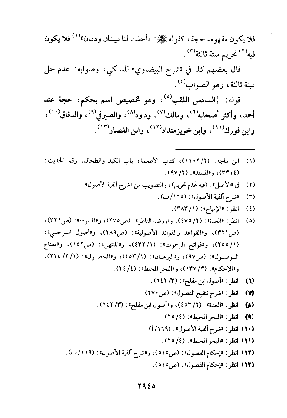 قَالَ بَعضهم كَذَا فِي " شرح الْبَيْضَاوِيّ " للسبكي، وَصَوَابه: عدم حل ميتَة ثَالِثَة، وَهُوَ الصَّوَاب.