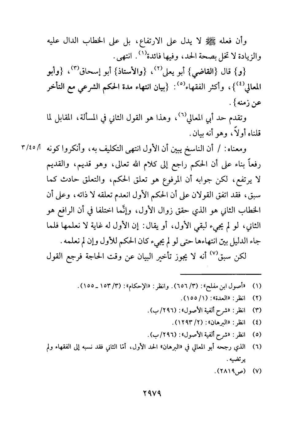 {و} قَالَ {القَاضِي} أَبُو يعلى، {والأستاذ} أَبُو إِسْحَاق، {وَأَبُو الْمَعَالِي} ، وَأكْثر الْفُقَهَاء: {بَيَان انْتِهَاء مُدَّة الحكم الشَّرْعِيّ مَعَ التَّأَخُّر عَن زَمَنه} .