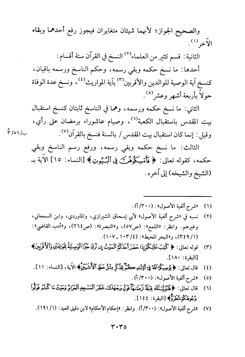 الثَّانِيَة: قسم كثير من الْعلمَاء النّسخ فِي الْقُرْآن سِتَّة أَقسَام:
