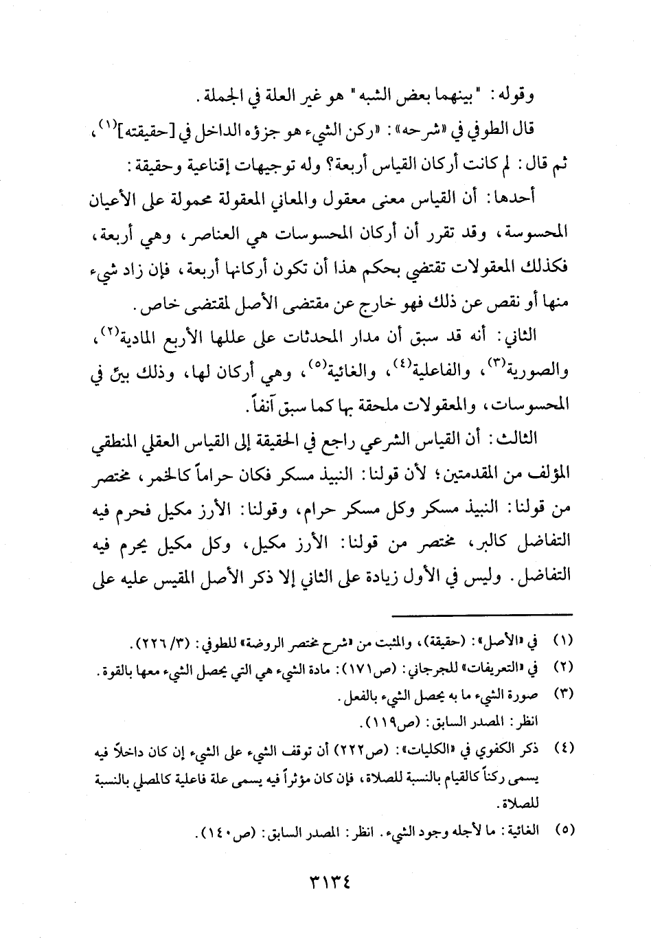 قَالَ الطوفي فِي " شَرحه ": " ركن الشَّيْء هُوَ جزؤه الدَّاخِل فِي [حَقِيقَته] ، ثمَّ قَالَ: لم كَانَت أَرْكَان الْقيَاس أَرْبَعَة؟ وَله توجيهات إقناعية وَحَقِيقَة: