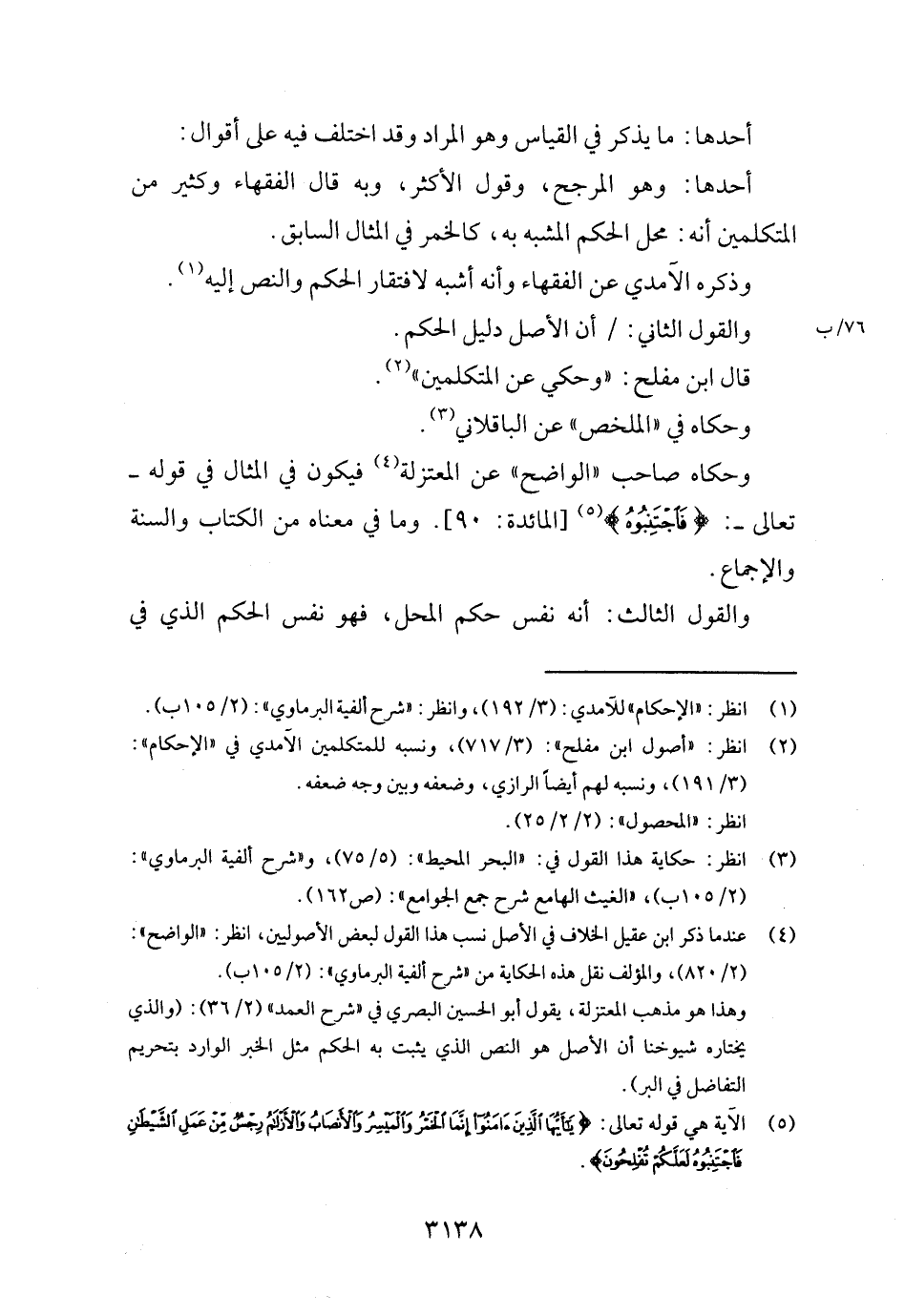 أَحدهَا: مَا يذكر فِي الْقيَاس وَهُوَ المُرَاد وَقد اخْتلف فِيهِ على أَقْوَال:
