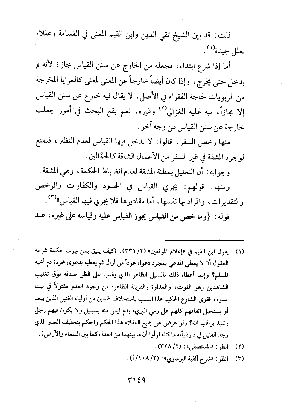 وَجَوَابه: أَن التَّعْلِيل بمظنة الْمَشَقَّة لعدم انضباط الْحِكْمَة، وَهِي الْمَشَقَّة.