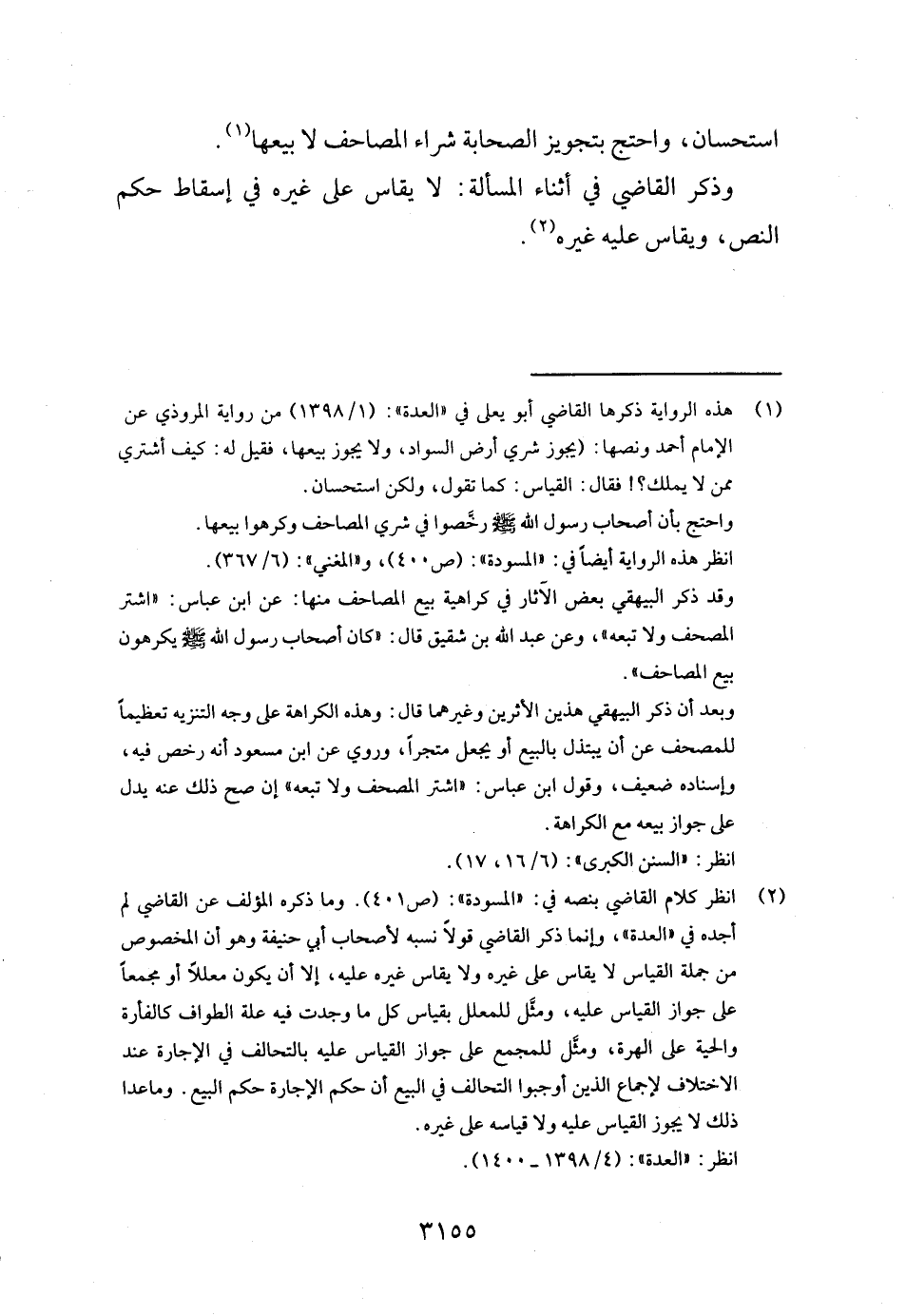اسْتِحْسَان، وَاحْتج بتجويز الصَّحَابَة شِرَاء الْمَصَاحِف لَا بيعهَا.