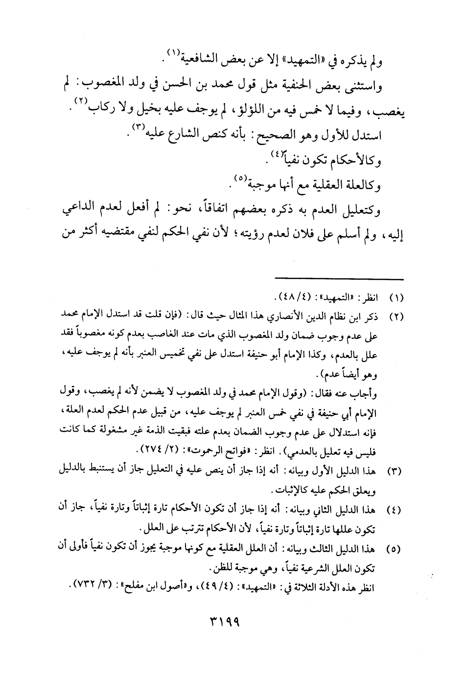 وَاسْتثنى بعض الْحَنَفِيَّة مثل قَول مُحَمَّد بن الْحسن فِي ولد الْمَغْصُوب: لم يغصب، وَفِيمَا لَا خمس فِيهِ من اللُّؤْلُؤ، لم يوجف عَلَيْهِ بخيل وَلَا ركاب. اسْتدلَّ للْأولِ وَهُوَ الصَّحِيح: بِأَنَّهُ كنص الشَّارِع عَلَيْهِ.