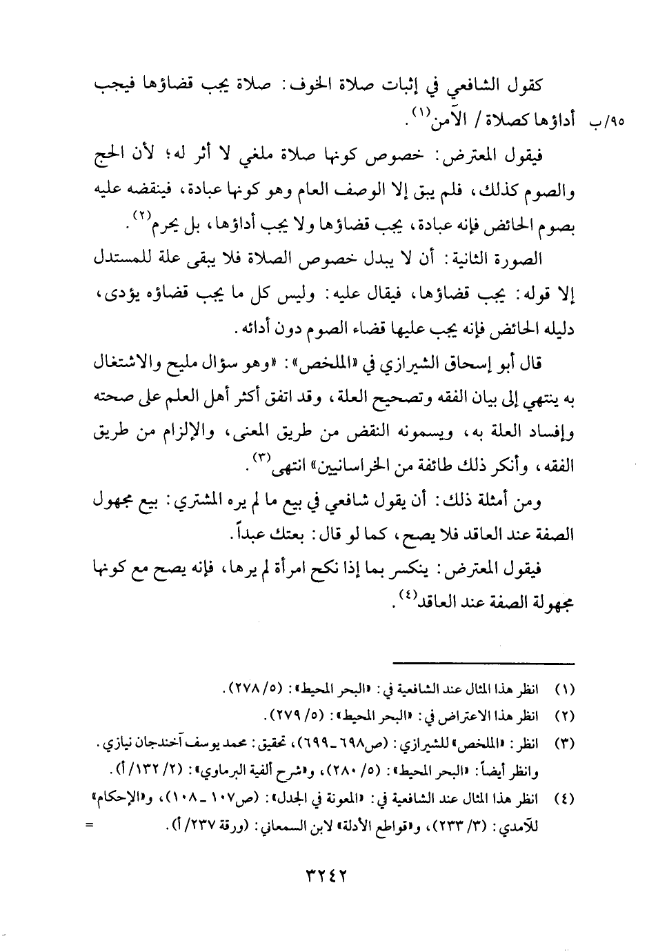 الصُّورَة الثَّانِيَة: أَن لَا يُبدل خُصُوص الصَّلَاة فَلَا يبْقى عِلّة للمستدل إِلَّا قَوْله: يجب قَضَاؤُهَا، فَيُقَال عَلَيْهِ: وَلَيْسَ كل مَا يجب قَضَاؤُهُ يُؤدى، دَلِيله الْحَائِض فَإِنَّهُ يجب عَلَيْهَا قَضَاء الصَّوْم دون أَدَائِهِ.