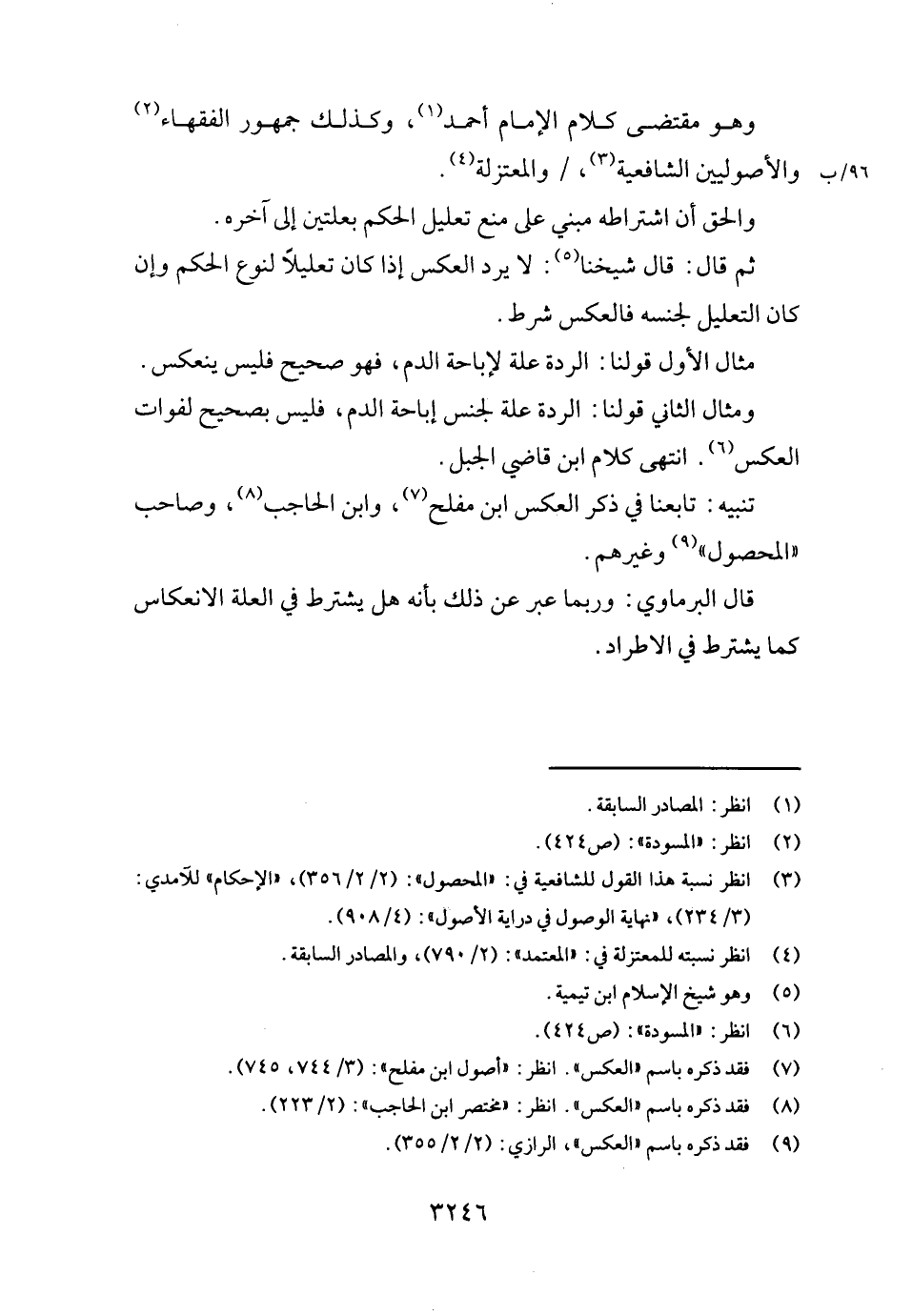 تَنْبِيه: تابعنا فِي ذكر الْعَكْس ابْن مُفْلِح، وَابْن الْحَاجِب، وَصَاحب " الْمَحْصُول " وَغَيرهم.