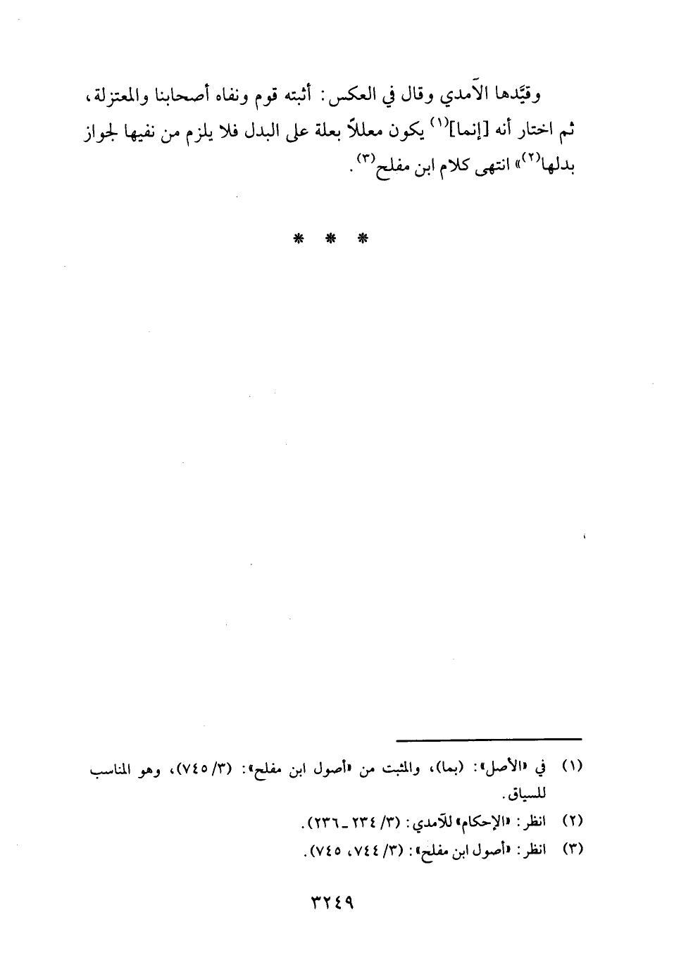 وقيدها الْآمِدِيّ وَقَالَ فِي الْعَكْس: أثْبته قوم ونفاه أَصْحَابنَا والمعتزلة ثمَّ اخْتَار أَنه [إِنَّمَا] يكون مُعَللا بعلة على الْبَدَل فَلَا يلْزم من نَفيهَا لجَوَاز بدلهَا " انْتهى كَلَام ابْن مُفْلِح.