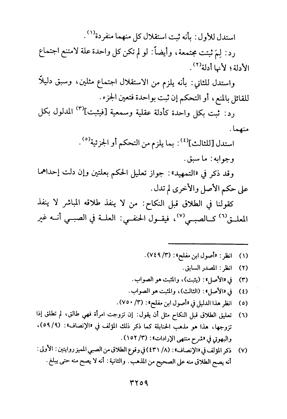 رد: لم ثبتَتْ مجتمعة، وَأَيْضًا: لَو لم تكن كل وَاحِدَة عِلّة لَا لامتنع اجْتِمَاع الْأَدِلَّة؛ لِأَنَّهَا أَدِلَّة.