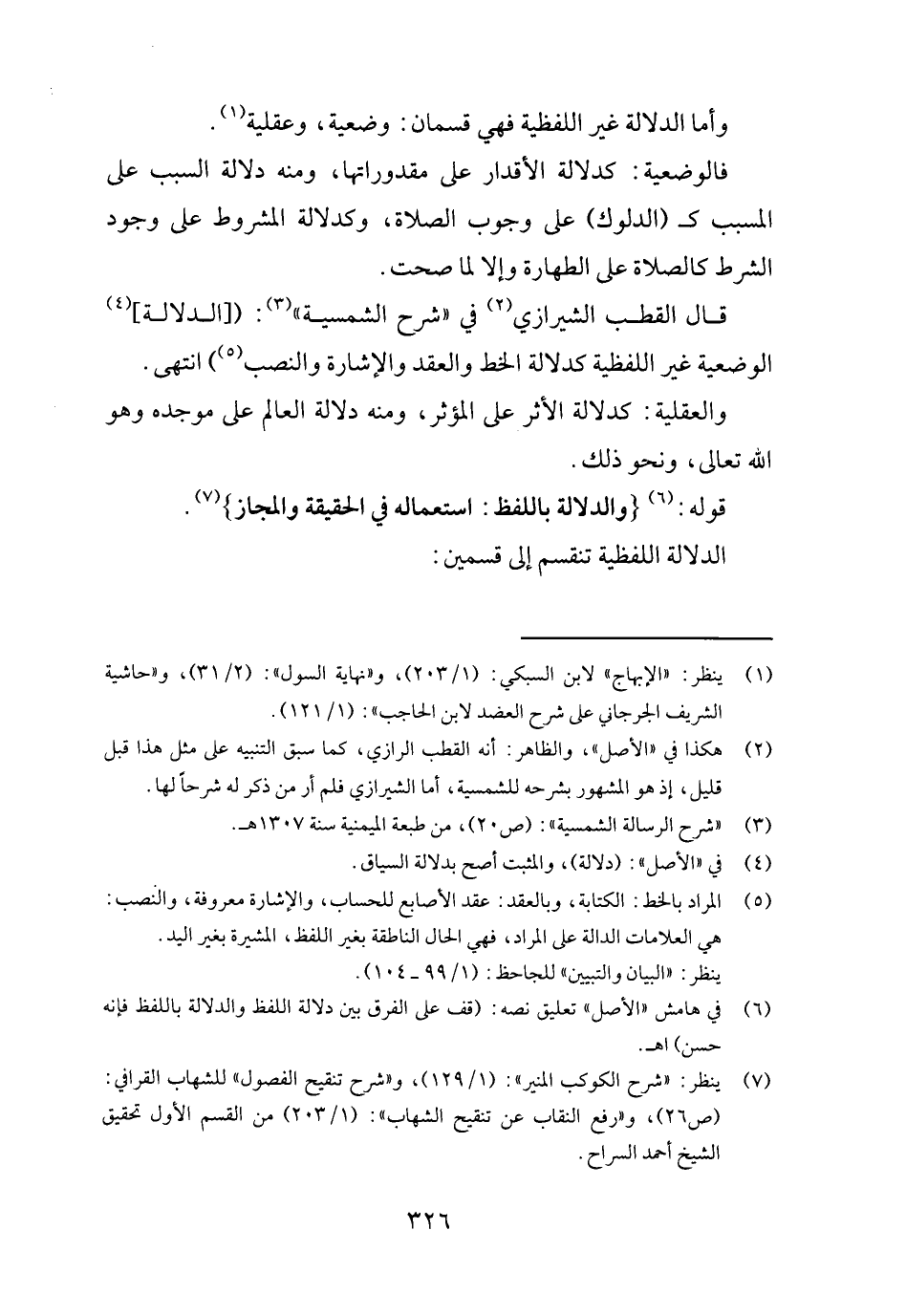 قَالَ القطب الشِّيرَازِيّ فِي " شرح الشمسية ": ( [الدّلَالَة] الوضعية غير اللفظية كدلالة الْخط وَالْعقد وَالْإِشَارَة وَالنّصب) انْتهى.