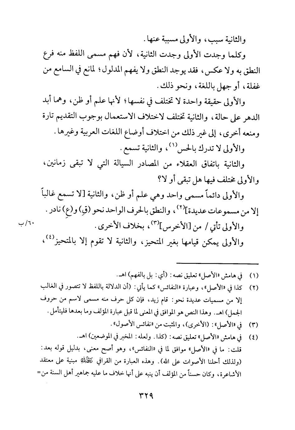 وَكلما وجدت الأولى وجدت الثَّانِيَة، لِأَن فهم مُسَمّى اللَّفْظ مِنْهُ فرع النُّطْق بِهِ وَلَا عكس، فقد يُوجد النُّطْق وَلَا يفهم الْمَدْلُول؛ لمَانع فِي السَّامع من غَفلَة، أَو جهل باللغة، وَنَحْو ذَلِك.