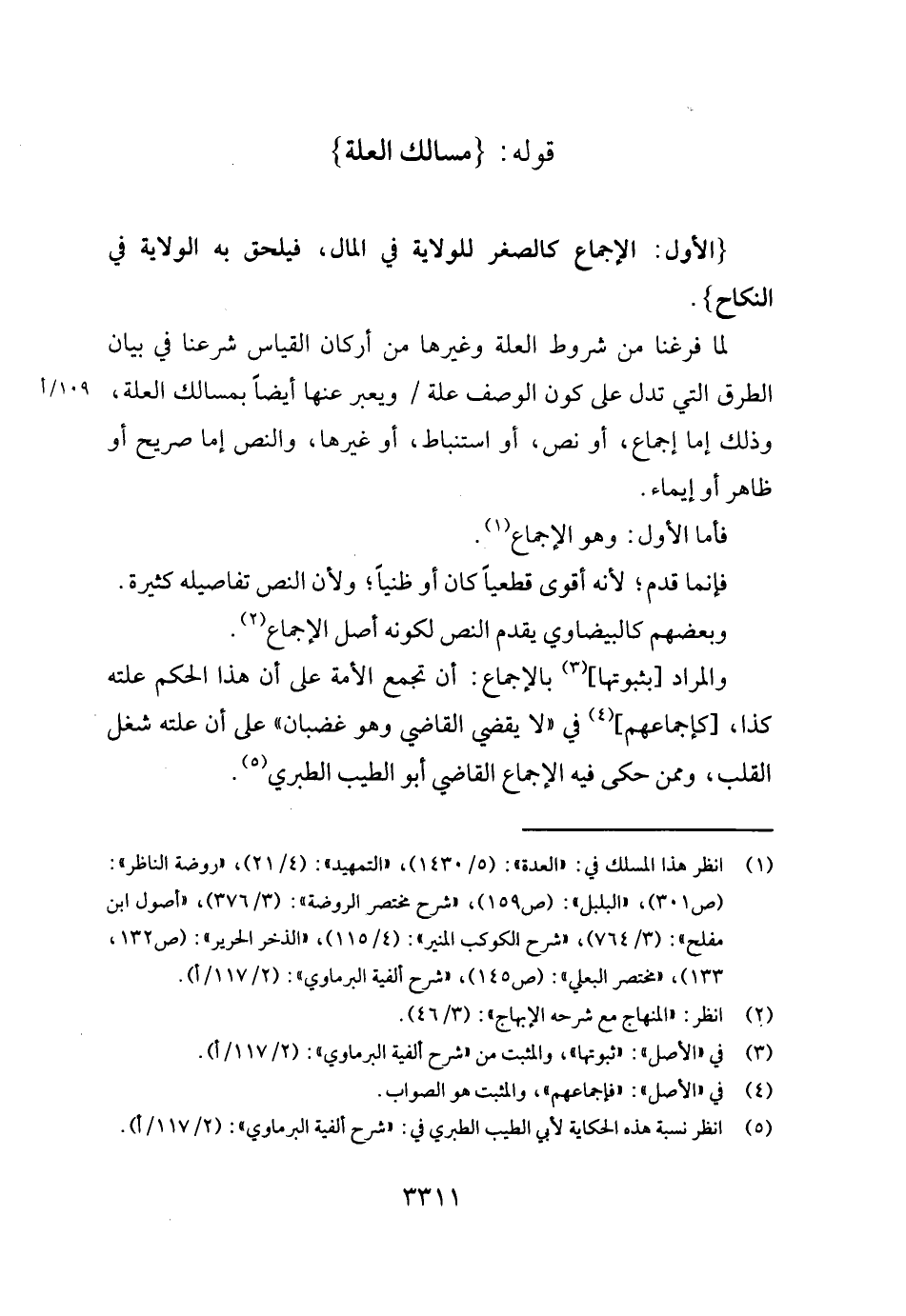 لما فَرغْنَا من شُرُوط الْعلَّة وَغَيرهَا من أَرْكَان الْقيَاس شرعنا فِي بَيَان الطّرق الَّتِي تدل على كَون الْوَصْف عِلّة / ويعبر عَنْهَا أَيْضا بمسالك الْعلَّة، وَذَلِكَ إِمَّا إِجْمَاع، أَو نَص، أَو استنباط، أَو غَيرهَا، وَالنَّص إِمَّا صَرِيح أَو ظَاهر أَو إِيمَاء.
