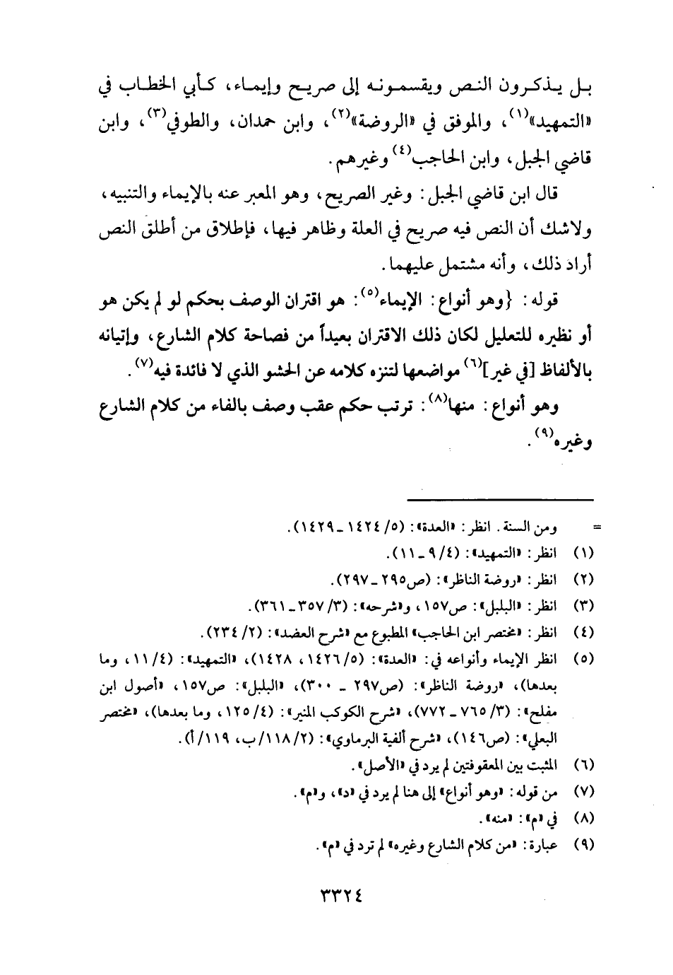بل يذكرُونَ النَّص ويقسمونه إِلَى صَرِيح وإيماء، كَأبي الْخطاب فِي " التَّمْهِيد "، والموفق فِي " الرَّوْضَة "، وَابْن حمدَان، والطوفي، وَابْن قَاضِي الْجَبَل، وَابْن الْحَاجِب وَغَيرهم.