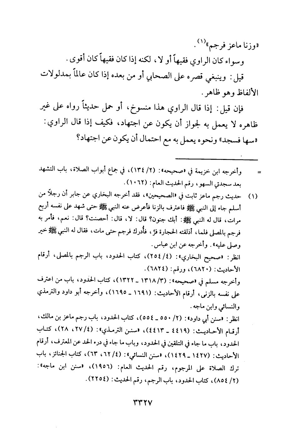 فَإِن قيل: إِذا قَالَ الرَّاوِي هَذَا مَنْسُوخ، أَو حمل حَدِيثا رَوَاهُ على غير ظَاهره لَا يعْمل بِهِ لجَوَاز أَن يكون عَن اجْتِهَاد، فَكيف إِذا قَالَ الرَّاوِي: " سَهَا فَسجدَ " وَنَحْوه يعْمل بِهِ مَعَ احْتِمَال أَن يكون عَن اجْتِهَاد؟