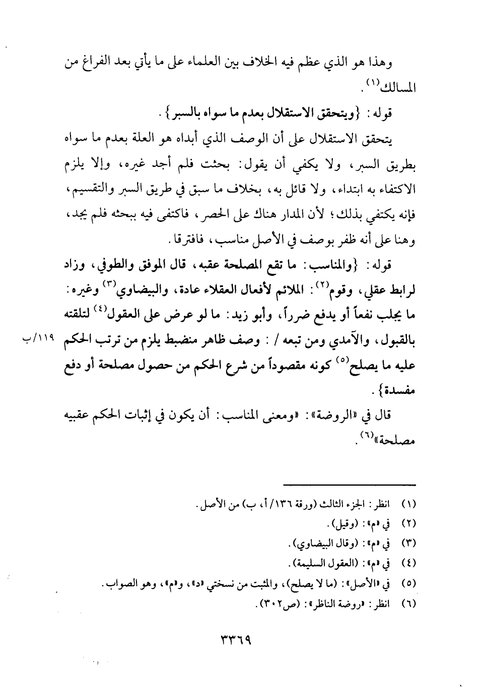 يتَحَقَّق الِاسْتِقْلَال على أَن الْوَصْف الَّذِي أبداه هُوَ الْعلَّة بِعَدَمِ مَا سواهُ بطرِيق السبر، وَلَا يَكْفِي أَن يَقُول: بحثت فَلم اجد غَيره، وَإِلَّا يلْزم الِاكْتِفَاء بِهِ ابْتِدَاء، وَلَا قَائِل بِهِ بِخِلَاف مَا سبق فِي طَرِيق السبر والتقسيم، فَإِنَّهُ يَكْتَفِي بذلك؛ لِأَن الْمدَار هُنَاكَ على الْحصْر، فَاكْتفى فِيهِ ببحثه فَلم يجد، وَهنا على أَنه ظفر بِوَصْف فِي الأَصْل مُنَاسِب، فَافْتَرقَا.
