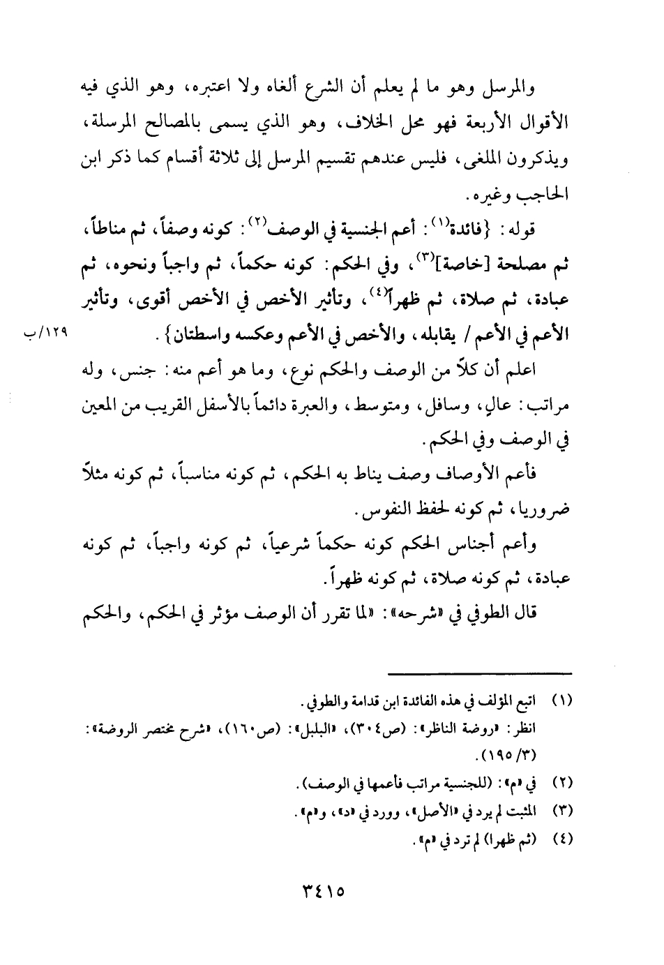والمرسل وَهُوَ مَا لم يعلم أَن الشَّرْع ألغاه وَلَا اعْتَبرهُ، وَهُوَ الَّذِي فِيهِ الْأَقْوَال الْأَرْبَعَة فَهُوَ مَحل الْخلاف، وَهُوَ الَّذِي يُسمى بالمصالح الْمُرْسلَة، ويذكرون الملغى، فَلَيْسَ عِنْدهم تَقْسِيم الْمُرْسل إِلَى ثَلَاثَة أَقسَام كَمَا ذكر ابْن الْحَاجِب وَغَيره.