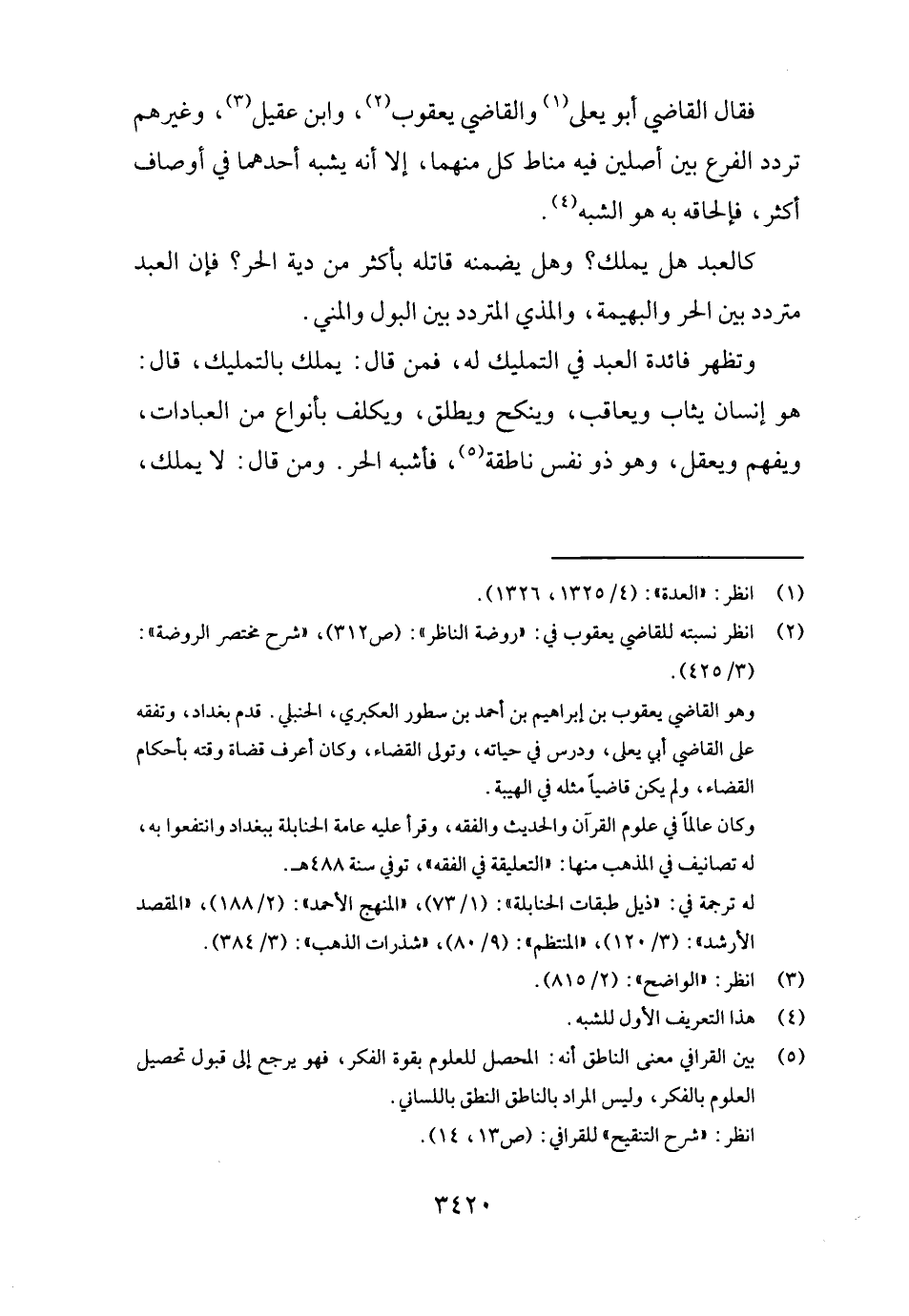 وَتظهر فَائِدَة العَبْد فِي التَّمْلِيك لَهُ، فَمن قَالَ: يملك بالتمليك، قَالَ: هُوَ إِنْسَان يُثَاب ويعاقب، وينكح وَيُطلق، ويكلف بأنواع من الْعِبَادَات، وَيفهم وَيعْقل، وَهُوَ ذُو نفس ناطقة، فَأشبه الْحر. وَمن قَالَ: لَا يملك،