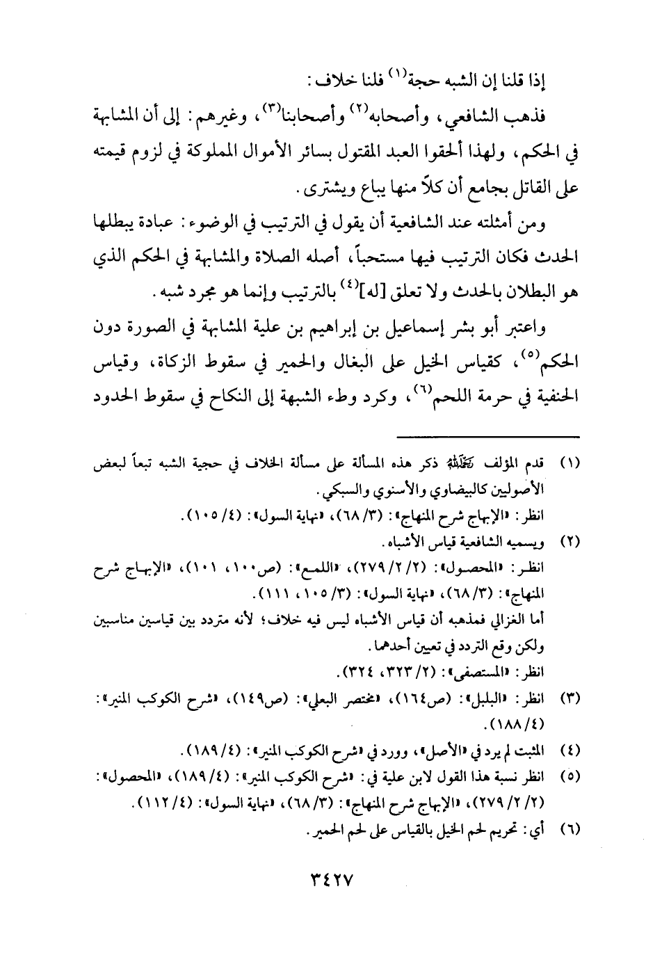 فَذهب الشَّافِعِي، وَأَصْحَابه وأصحابنا، وَغَيرهم: إِلَى أَن المشابهة فِي الحكم، وَلِهَذَا ألْحقُوا العَبْد الْمَقْتُول بِسَائِر الْأَمْوَال الْمَمْلُوكَة فِي لُزُوم قِيمَته على الْقَاتِل بِجَامِع أَن كلا مِنْهَا يُبَاع ويشترى.