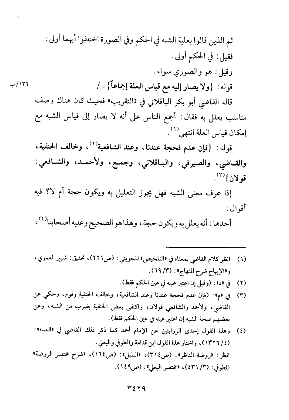 قَالَه القَاضِي أَبُو بكر الباقلاني فِي " التَّقْرِيب " فَحَيْثُ كَانَ هُنَاكَ وصف مُنَاسِب يُعلل بِهِ فَقَالَ: أجمع النَّاس على أَنه لَا يُصَار إِلَى قِيَاس الشّبَه مَعَ إِمْكَان قِيَاس الْعلَّة انْتهى.