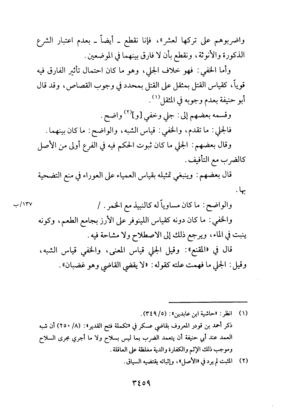 قَالَ فِي " الْمقنع ": وَقيل الْجَلِيّ قِيَاس الْمَعْنى، والخفي قِيَاس الشّبَه، وَقيل: الْجَلِيّ مَا فهمت علته كَقَوْلِه: " لَا يقْضِي القَاضِي وَهُوَ غَضْبَان ".