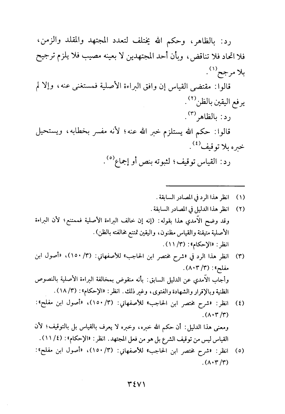 رد: بِالظَّاهِرِ، وَحكم اللَّهِ يخْتَلف لتَعَدد الْمُجْتَهد والمقلد والزمن، فَلَا اتِّحَاد فَلَا تنَاقض، وَبِأَن أحد الْمُجْتَهدين لَا بِعَيْنِه مُصِيب فَلَا يلْزم تَرْجِيح بِلَا مُرَجّح.