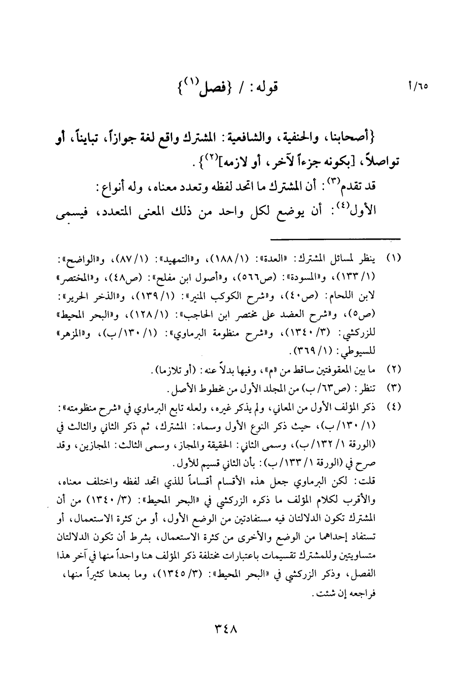 قد تقدم: أَن الْمُشْتَرك مَا اتَّحد لَفظه وتعدد مَعْنَاهُ، وَله أَنْوَاع: