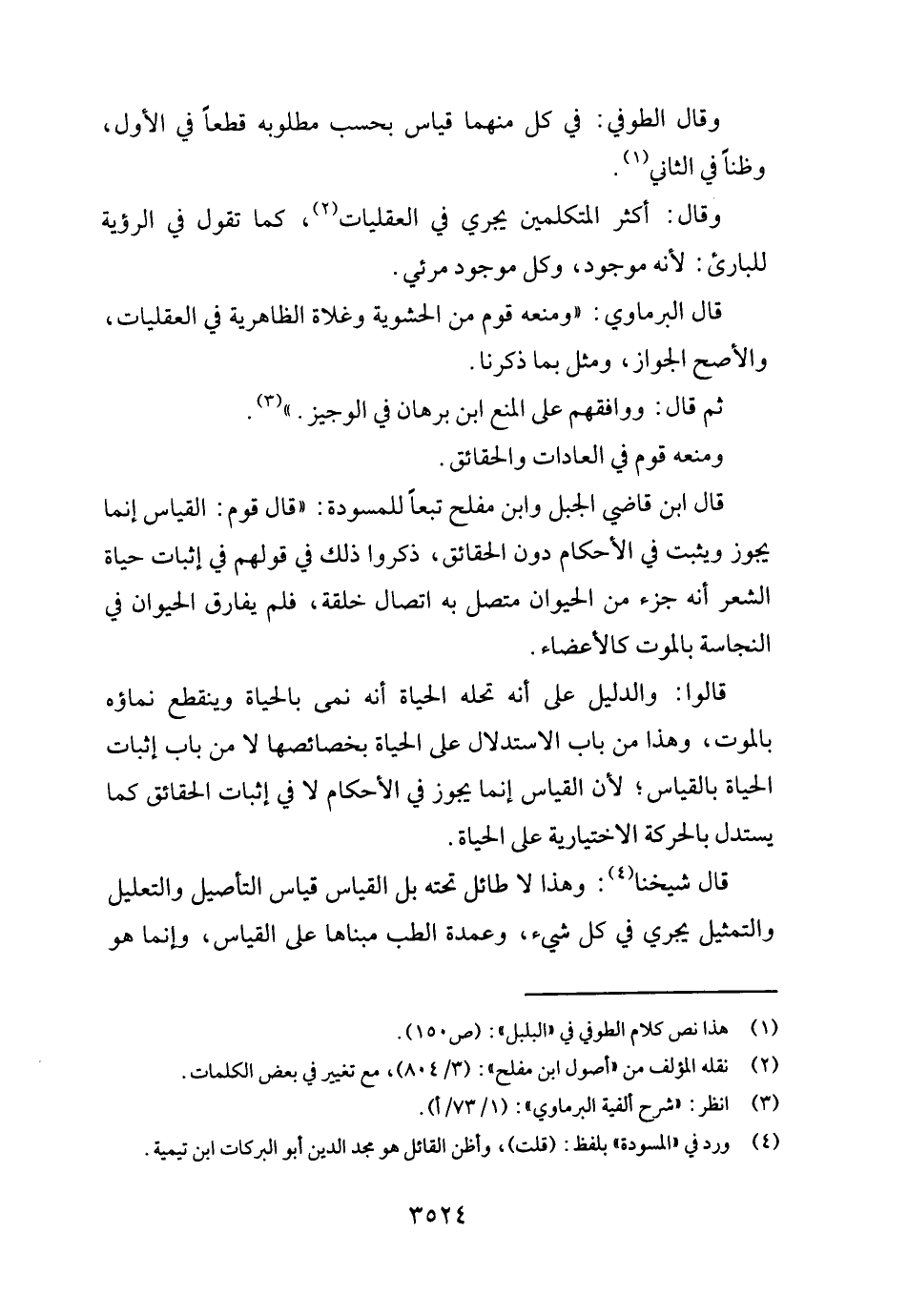 وَقَالَ: أَكثر الْمُتَكَلِّمين يجْرِي فِي العقليات، كَمَا تَقول فِي الرُّؤْيَة للبارىء: لِأَنَّهُ مَوْجُود، وكل مَوْجُود مرئي.