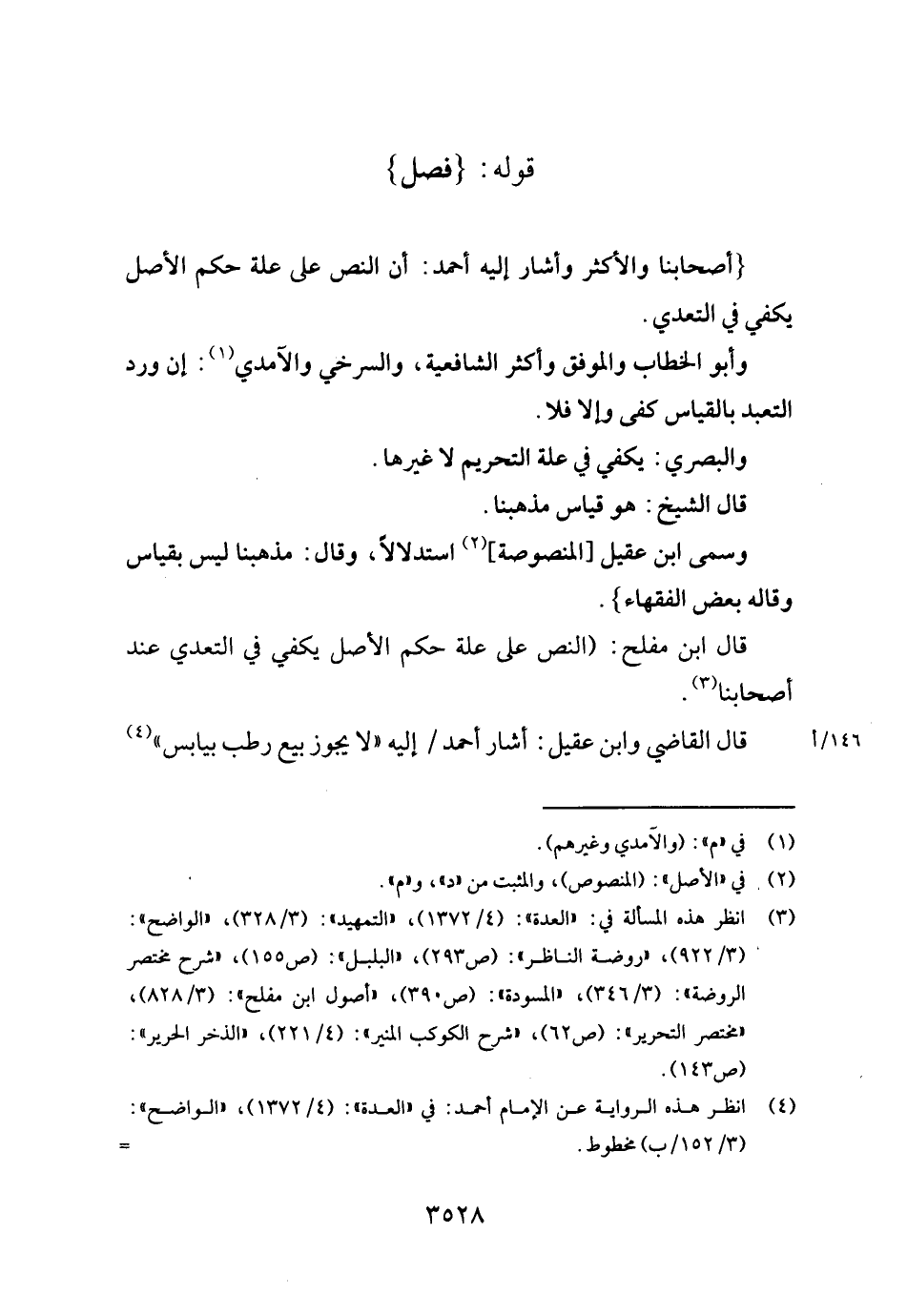 (أَصْحَابنَا وَالْأَكْثَر وَأَشَارَ إِلَيْهِ أَحْمد: أَن النَّص على عِلّة حكم الأَصْل يَكْفِي فِي التَّعَدِّي.