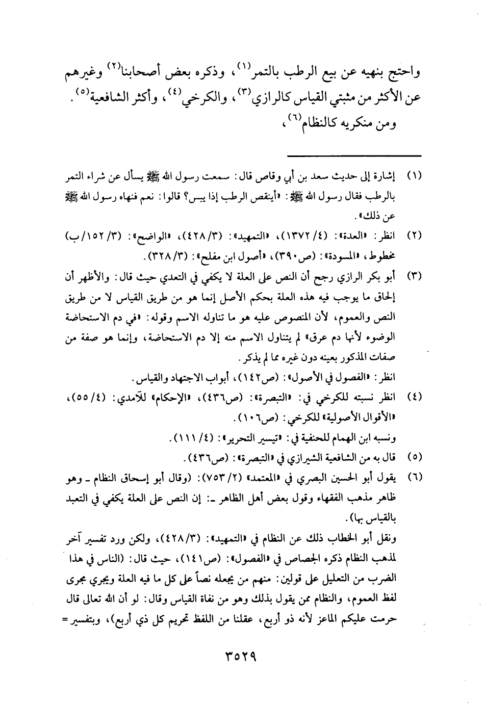 وَاحْتج بنهيه عَن بيع الرطب بِالتَّمْرِ، وَذكره بعض أَصْحَابنَا وَغَيرهم عَن الْأَكْثَر من مثبتي الْقيَاس كالرازي، والكرخي، وَأكْثر الشَّافِعِيَّة وَمن منكريه كالنظام،