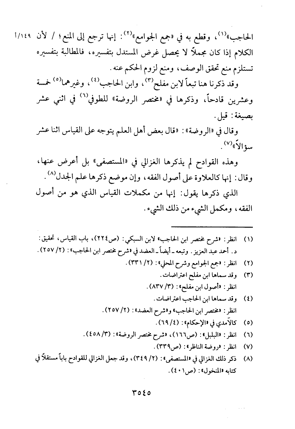 وَهَذِه القوادح لم يذكرهَا الْغَزالِيّ فِي " الْمُسْتَصْفى " بل أعرض عَنْهَا، وَقَالَ: إِنَّهَا كالعلاوة على أصُول الْفِقْه، وَإِن مَوضِع ذكرهَا علم الجدل. الَّذِي ذكرهَا يَقُول: إِنَّهَا من مكملات الْقيَاس الَّذِي هُوَ من أصُول الْفِقْه، ومكمل الشَّيْء من ذَلِك الشَّيْء.