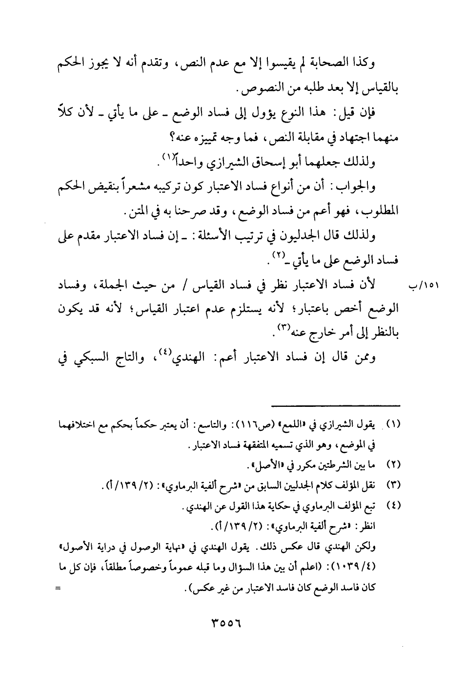 وَلذَلِك قَالَ الجدليون فِي تَرْتِيب الأسئلة: _ إِن فَسَاد الِاعْتِبَار مقدم على فَسَاد الْوَضع على مَا يَأْتِي -.