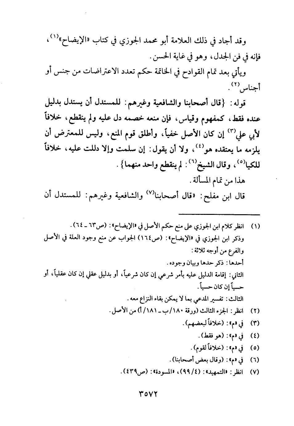 قَالَ ابْن مُفْلِح: " قَالَ أَصْحَابنَا وَالشَّافِعِيَّة وَغَيرهم: للمستدل أَن
