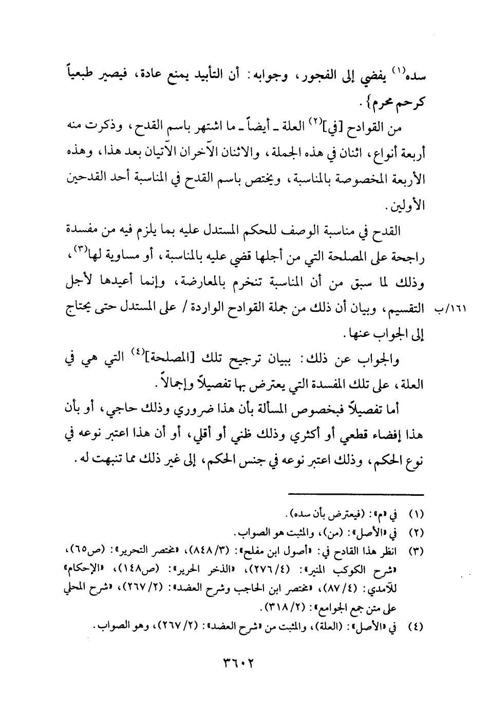 من القوادح [فِي] الْعلَّة - أَيْضا - مَا اشْتهر باسم الْقدح، وَذكرت مِنْهُ أَرْبَعَة أَنْوَاع، اثْنَان فِي هَذِه الْجُمْلَة، والاثنان الْآخرَانِ الآتيان بعد هَذَا، وَهَذِه الْأَرْبَعَة الْمَخْصُوصَة بالمناسبة، وَيخْتَص باسم الْقدح فِي الْمُنَاسبَة أحد القدحين الْأَوَّلين.
