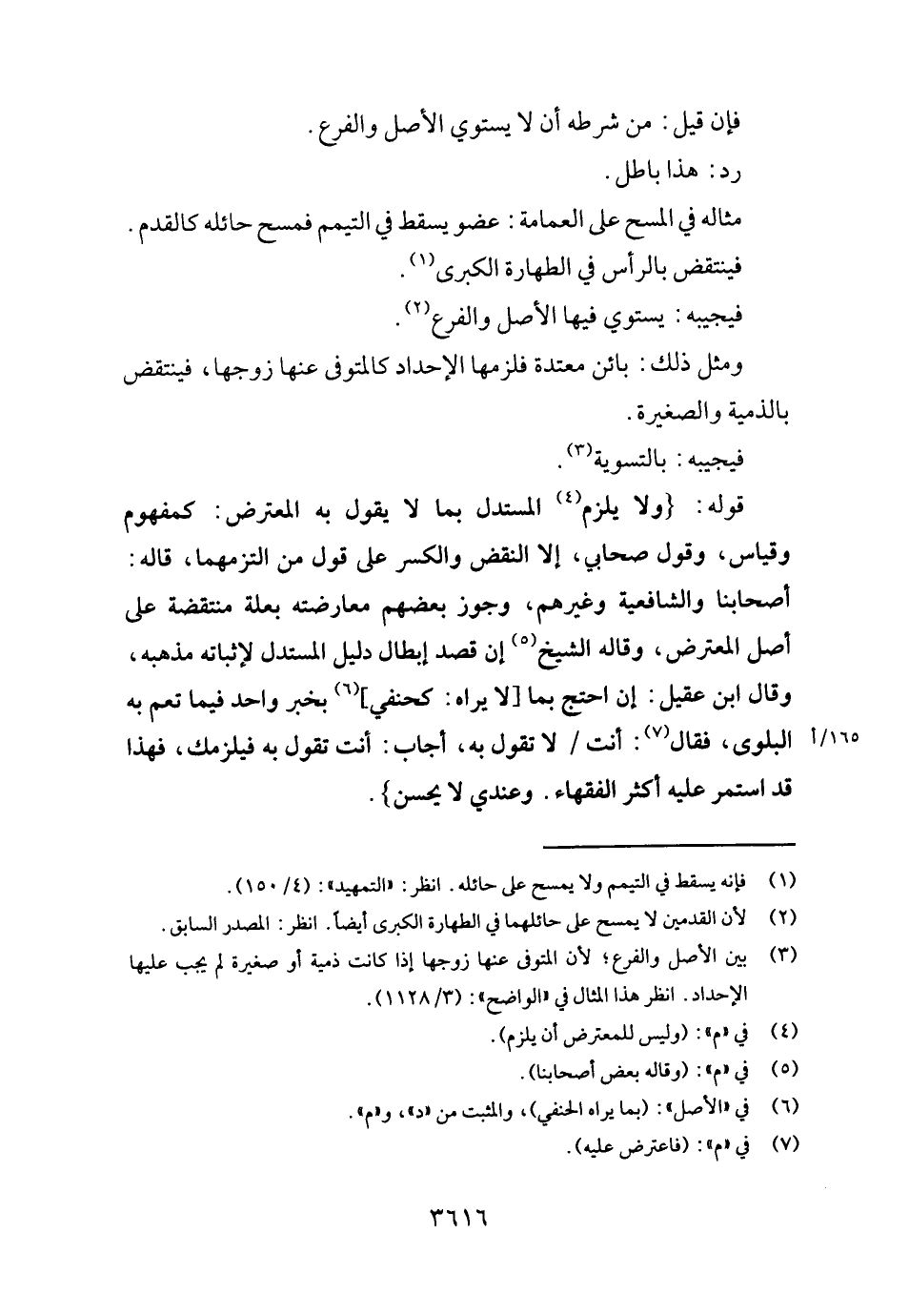 فَيُجِيبهُ: يَسْتَوِي فِيهَا الأَصْل وَالْفرع.