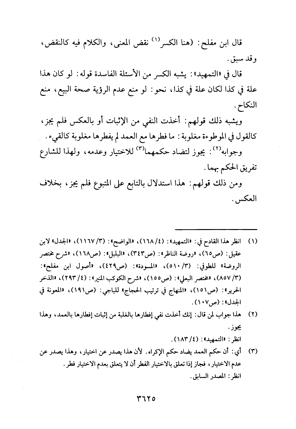 قَالَ ابْن مُفْلِح: (هُنَا الْكسر نقض الْمَعْنى، وَالْكَلَام فِيهِ كالنقض، وَقد سبق.