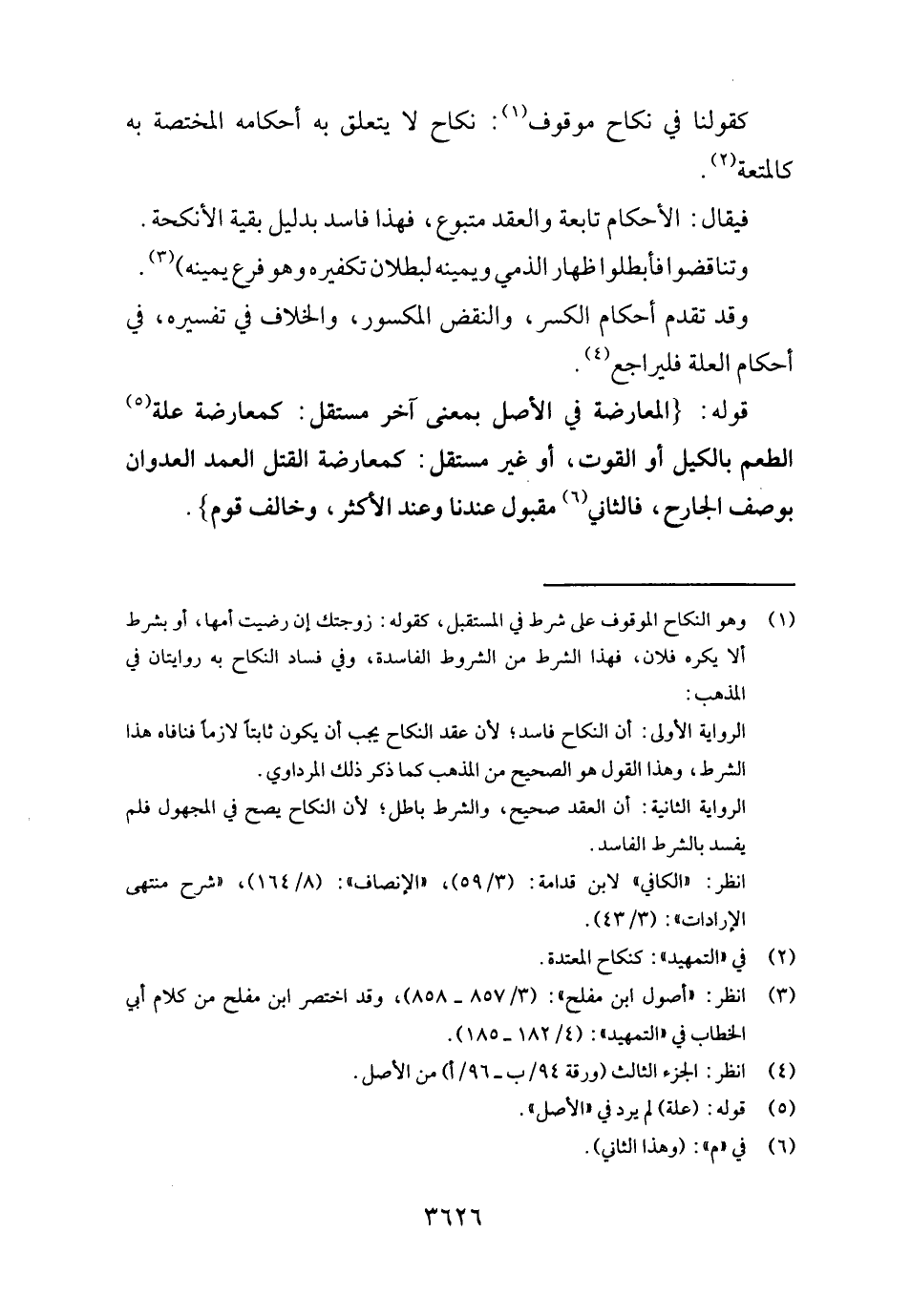 كَقَوْلِنَا فِي نِكَاح مَوْقُوف: نِكَاح لَا يتَعَلَّق بِهِ أَحْكَامه المختصة بِهِ كالمتعة.