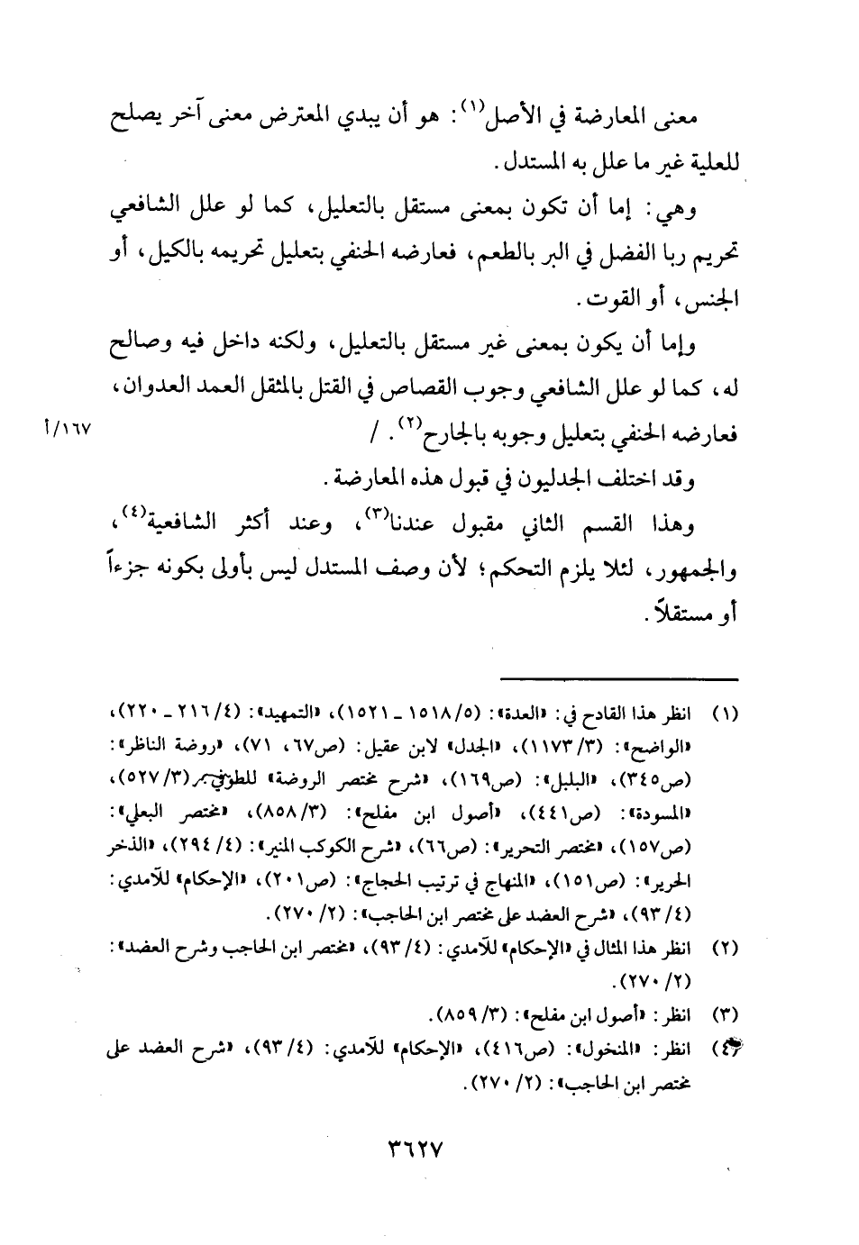 وَإِمَّا أَن يكون بِمَعْنى غير مُسْتَقل بِالتَّعْلِيلِ، وَلكنه دَاخل فِيهِ وَصَالح لَهُ، كَمَا لَو علل الشَّافِعِي وجوب الْقصاص فِي الْقَتْل بالمثقل الْعمد الْعدوان، فعارضه الْحَنَفِيّ بتعليل وُجُوبه بالجارح. /
